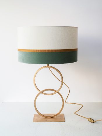 PANTALLA CILÍNDRICA COMBINACIÓN LINO CRUDO Y TERCIOPELO VERDE